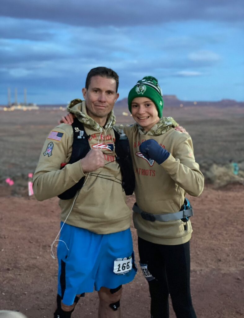 A great lesson. During my second 100-mile race, I fell into step with another runner.  We ended up becoming friends and logged more than forty miles together. In the middle of that long night, my oldest son who was only thirteen at the time, joined us and paced me for thirty miles straight. When he finally peeled off and my new friend and I headed back out, the man turned to me and said, “Your teenage son just did something at 13 that most people believe is impossible and he never complained once. Do you realize how powerful your example is? He pushed through because you showed him what was possible. Can you imagine what that will do for him?”